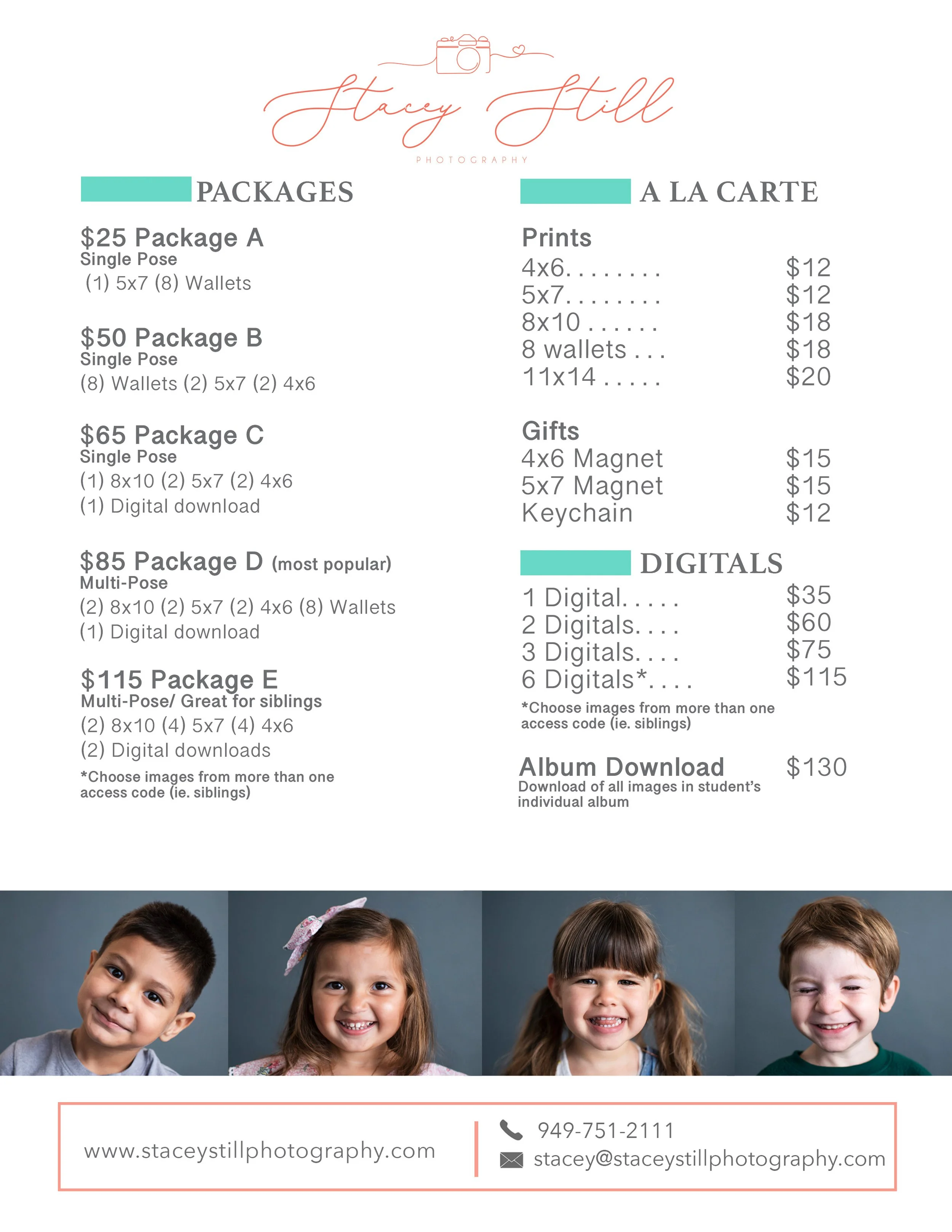 I would LOVE to be able to show parents and schools my most recent work! By taking a quick second to fill out the form, by clicking the Model Release button below, you can help me show off my work and grow my business by giving Stacey Still Photography permission to share your child’s photos. (I never share names of children or the schools they belong to)